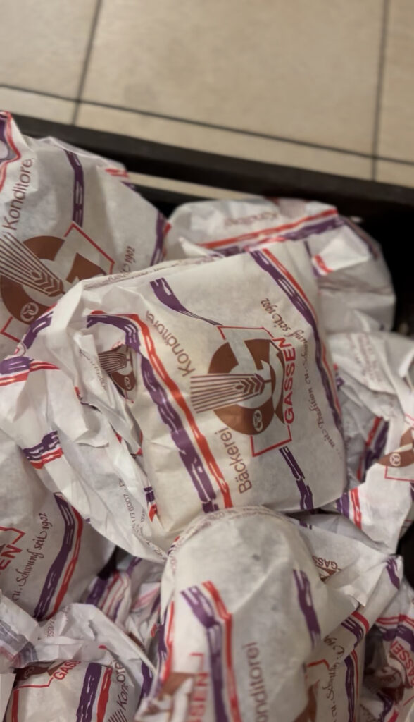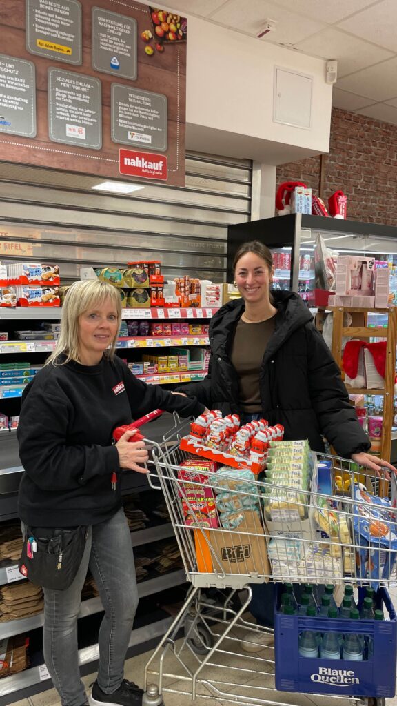 Dank der Unterstützung der Bäckerei Gassen und des Nahkauf konnten wir die Taschen mit frischen Backwaren und Lebensmitteln füllen. Ergänzt haben wir sie mit Hygieneprodukten, Wärmepads, selbstgemachten Plätzchen und liebevoll gestalteten Karten mit persönlichen Worten.